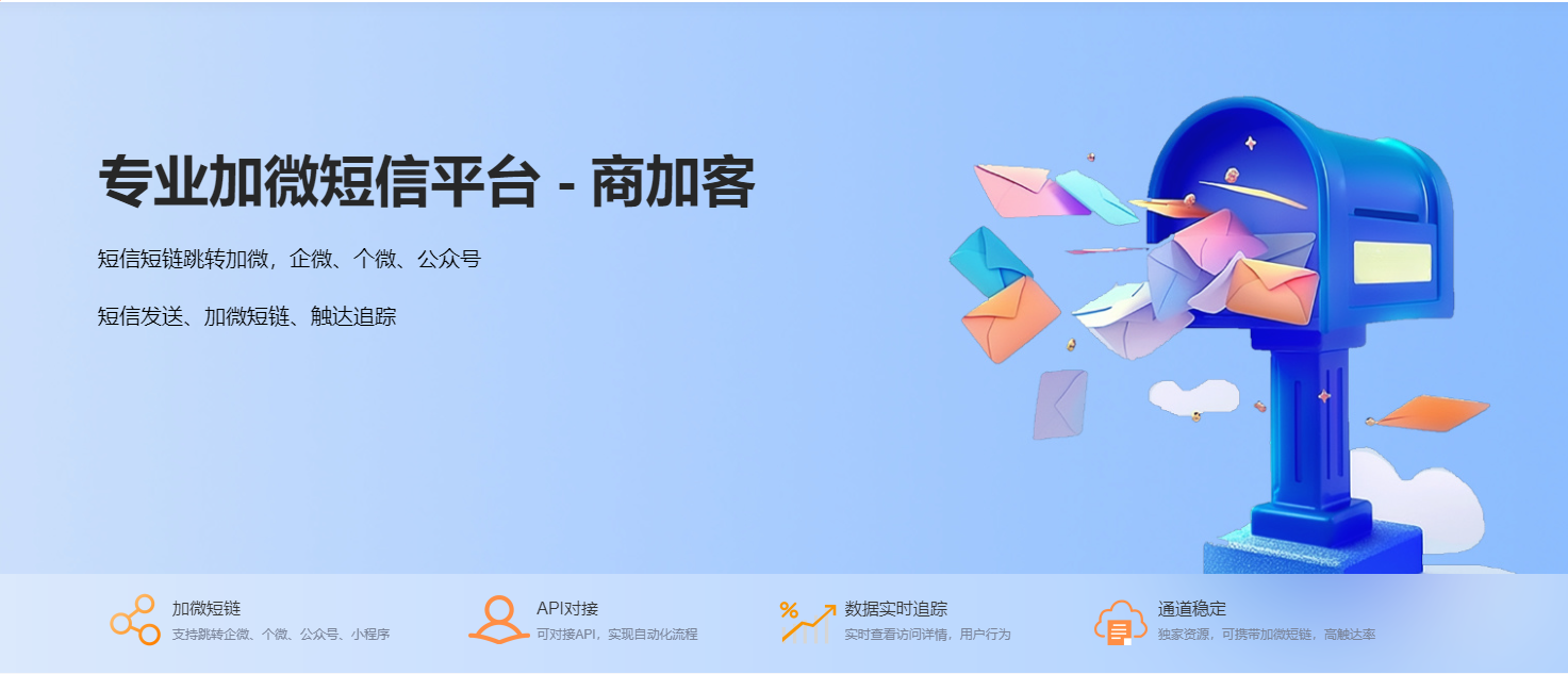 短信营销的优势在于其直接性和普遍性。几乎每一个拥有手机的用户都会接收短信,这使得短信成为一种能够触及广泛受众的营销工具。然而,传统短信营销往往存在互动性差、转化率难以提升等问题。微信的出现则为解决这些问题提供了绝佳的机会。微信凭借其丰富的功能,如公众号、小程序、企业微信和个人微信等,为企业与客户之间构建了一个深度互动的平台。从短信到微信的无缝跳转,就如同在两个不同的营销世界之间搭建了一座便捷的桥梁,让企业能够将短信营销中获取的潜在客户迅速引入到微信生态中,进行更深入、更多样化的互动,从而大大提升转化率。 商加客短信群发平台在这一营销模式的转换中扮演着极为重要的角色。作为一款专注于短信跳转微信的平台,它为企业提供了全方位的短信营销解决方案。其主营的商业短信发送服务涵盖了验证码、通知短信和营销短信等多种类型,满足了企业在不同场景下的需求。 以其短信短链跳转功能为例,它能够实现短信携带短信推送,并且轻松跳转到企微、个微、公众号、小程序等不同的微信生态元素。这一功能的意义非凡。对于企业来说,当他们发送营销短信时,可以在短信中嵌入短链,引导用户直接跳转到企业的微信公众号查看详细的产品介绍或优惠活动,或者跳转到小程序直接进行购买操作;也可以跳转到企业微信或个人微信,方便客户进一步咨询和沟通。这种无缝的跳转体验极大地提高了用户的操作便利性和参与度。 同时,商加客平台的号码追踪功能更是为企业的营销决策提供了有力的依据。企业在短信发送后,可以追踪短链的访问情况,实时查看用户是否点击短链、长按二维码、添加好友或开口咨询等行为。通过这些数据的分析,企业能够精准地了解用户的兴趣点和行为习惯,从而调整营销策略。例如,如果发现某个地区的用户对短链的点击量极低,企业就可以考虑调整短信内容或者发送时间;如果发现大量用户点击短链后只是浏览而没有进一步添加好友或开口咨询,企业则可以优化跳转后的微信页面内容或者客服引导话术。 短信营销与微信的结合是企业在移动互联网时代提升营销效果的有力手段,商加客平台以其强大的功能和便捷的操作流程,成为企业在这条营销之路上的得力助手。随着技术的不断发展和市场需求的不断变化,相信这种营销模式将会不断创新和完善,为企业带来更多的营销机遇和商业价值。
